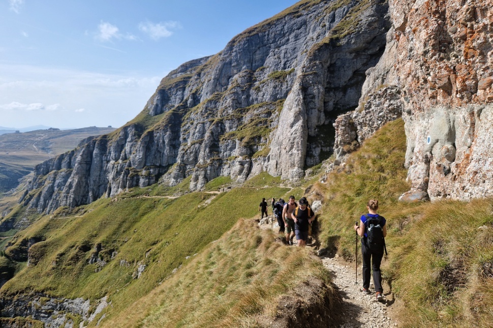 Vigyázz, mert ha lekésed az utolsó lefelé tartó kabint, akkor 4 kilométeres bónusz vár rád, vagyis további legalább 1 óra gyaloglás, hogy 2000 méterről leérj 1400 méteres szintre. Ez olyannyira motiváló tud lenni, hogy az eredetileg 6 órásra tervezett túrát (ami a Babele után a Caraimant is érintette), 5 óra alatt is képesek voltunk megjárni a bámészkodással együtt. A teljes, összesen 800 méter emelkedéssel járó útvonalunk itt követhető.