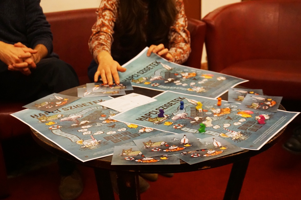 A fantáziának az előadás plakátjának készítésekor is teret engedtek az alkotók: a plakát maga ugyanis társasjátékként funkcionál, rajta az előadásban szerepet kapó szigetekkel. A társasjáték azonban az előadás megtekintése után tud igazán izgalmassá válni, hiszen a játék során a darab történetében szereplő család útját kell újra járni. Nyertesnek is megéri lenni – a társasjáték megalkotói szerint –, hiszen a nyereménye az, hogy másnap az ő kívánsága szerint reggelizik a család.