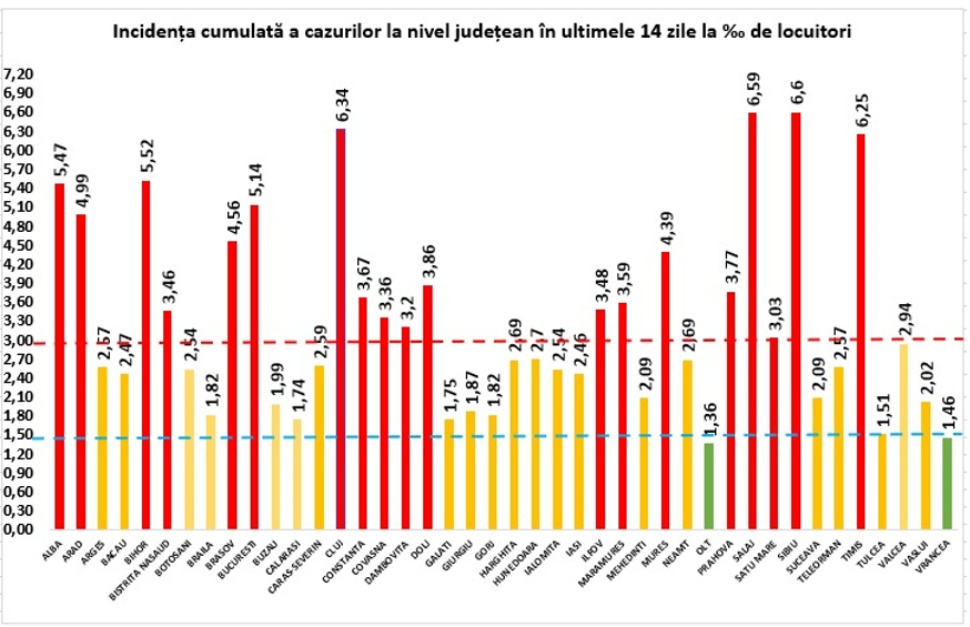 A kórházakban 12.688 beteget látnak el jelen pillanatban, ebből 1.076-ot az intenzív osztályokon. Összesen 3.488.090 tesztet végeztek el, ebből 11.445-öt az utóbbi 24 órában: 7.286 a járványügyi protokoll alapján, 4.159 kérésre készült. Románia területén 41.024 beteg van otthoni elkülönítésben, 72.980 potenciális vírushordozó házi karanténban, 19 személy pedig intézményes karanténban. A hatóságok az utóbbi 24 órában 1.455.795 lej értékben szabtak ki büntetést 8.487 esetben a járványügyi szabályok megsértése miatt, két ügyben bűnvádi eljárást is indítanak.