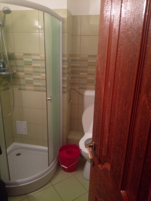 Naponta háromszor adnak enni. A panziónak az adminisztrátornője hozza az ételt. Maszkba, kesztyűbe fel van öltözve.