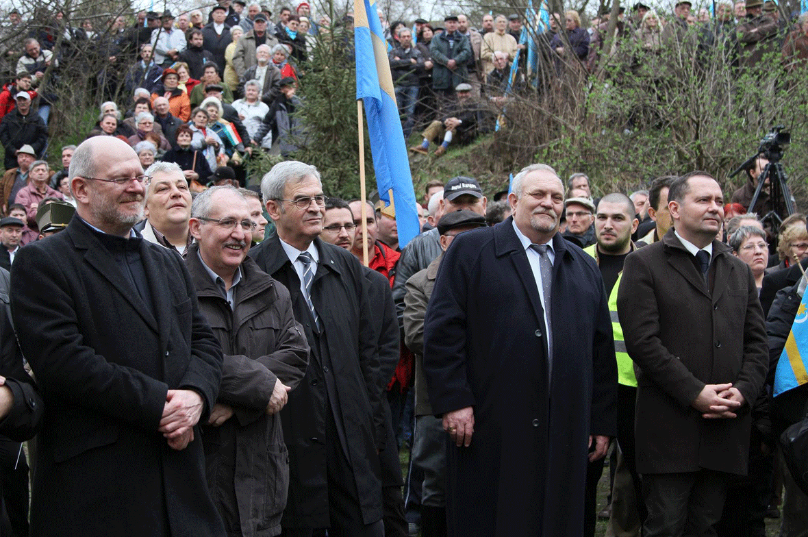 Egymásra ítélve: a néppártos Zakariás Zoltán, háttérben az RMDSZ helyi tanácsosai.