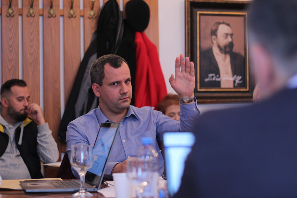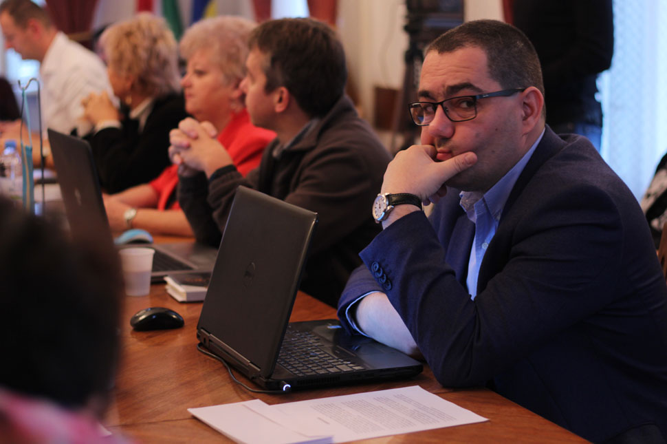 Derzsi szerint úgy szereznek tapasztalatot a fiatalok, ha lehetőséget kapnak. Orbán Árpád tisztázza, a pályázat nincs veszélyben, de szeretnének bizonyos összeget visszaszerezni. A jegyző megvédi az általa koordinált jogi osztályt: három olyan jogásszal is dolgozunk, akik zseniális elmék, néhány év múlva fényes jövő áll előttük, jelenleg is több mint 100 perben látnak el képviseletet. A fiatal jogászok nem tudják ellátni ezt az ügyet, mert táblabíróságon zajlik, és ahhoz, hogy törvényszéken vagy táblabíróságon képviseljenek ügyeket, bizonyos régiséggel, szakmai képzettséggel kell rendelkezniük. Kilenc tanácsos van mellette, a hét RMDSZ-es képviselő tartózkodik, elfogadják a határozattervezetet.