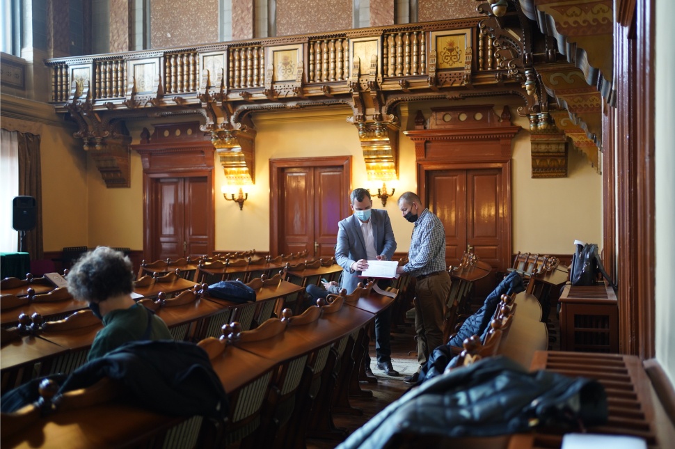 Minden készen áll az élő, videós közvetítésre is, de még úgy tűnik, zajlanak az egyeztetések a frakciókon belül meg a hivatal munkatársaival is, bár a nevetgélésekből ítélve nem csak komoly témákról lehet szó. – A lényeg az, hogy nem mi vagyunk a hunyók, hangzik el. A városházi történésekről is regényt lehetne írni, tudjuk meg.
