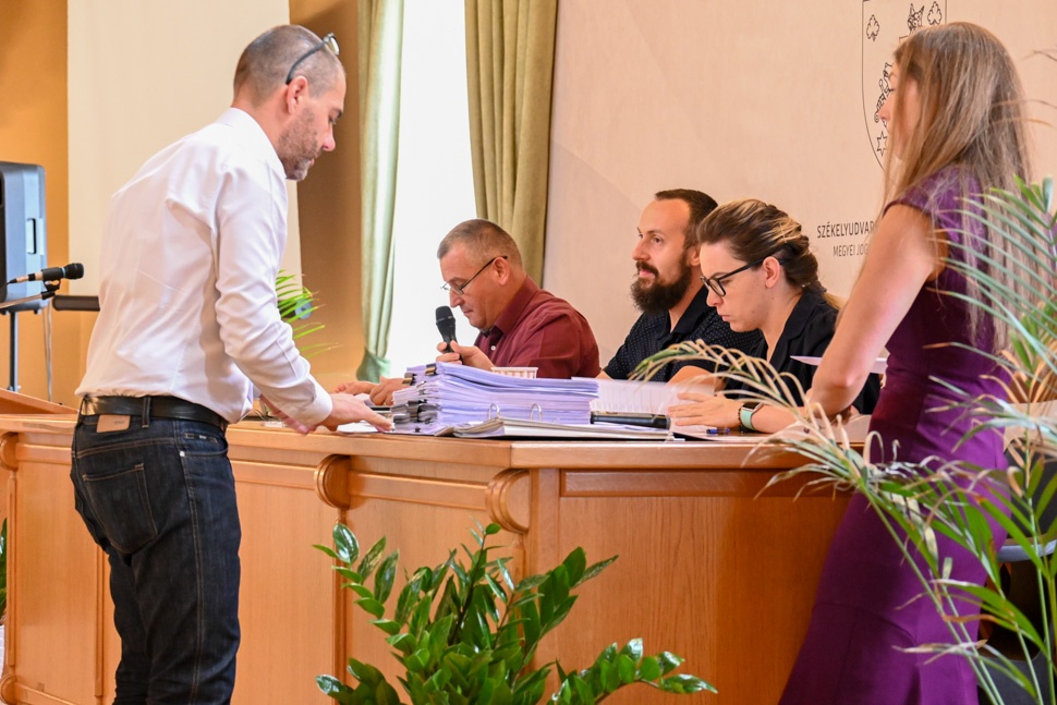 Benedek Árpád Csaba: ki kell hogy ábrándítsam, nem megszavaztuk, hanem megszavazták 10-en (a POL-ból és Bindea az MPP-től), úgy hogy a polgármester azt ígérte, hogy két hónap múlva folyni fog a víz. Az, hogy az út jobb vagy bal felé tették a vezetéket, gondolom, nem az átvétel előtt derült ki, erre majd Gálfi kell választ adjon. “Ön kell nyugodtan aludjon”, miközben a hivatal kollégáit Marosvásárhelyre hívják kihallgatásra. Mi van, ha azt mondják a DNA-nál, hogy az átvételi bizottság netán nyomásra nem vette át. Nem a 2022-es előírások alapján kellene megítélni a kivitelezést. Nem tudta, hogy mit ír alá, mikor jóváhagyta a tervmódosítást? Én ezt nem mondanám.