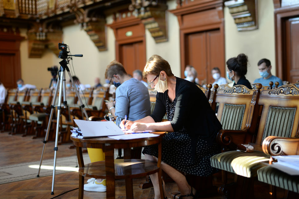 Ölvedi Zsolt és Arros Orsolya indulnak az ülésvezetői “tisztségért”. A 8 RMDSZ-es szavazat a saját jelöltre megy, így Arros lesz az ülésvezető. Beül Gálfi és Venczel Attila közé a pódiumon.