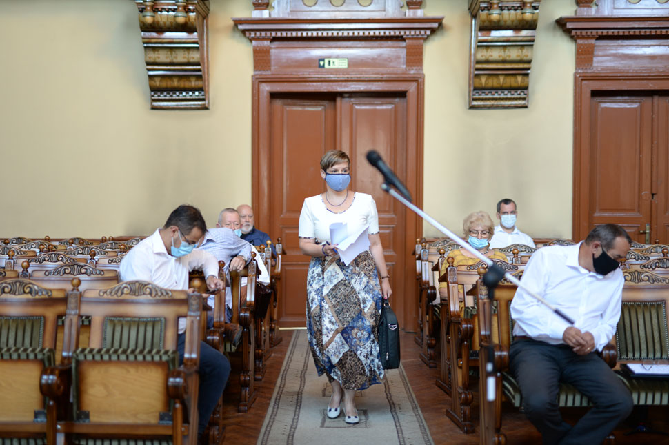 Ölvedi Zsolt és Arros Orsolya indulnak az ülésvezetői “tisztségért”. A 8 RMDSZ-es szavazat a saját jelöltre megy, így Arros lesz az ülésvezető. Beül Gálfi és Venczel Attila közé a pódiumon.