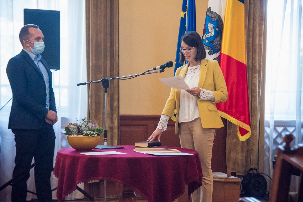Bibliával és virággal várják őket a pódium mellett felállított asztalkához. Külön felhívja a figyelmet, hogy az eskütétel alatt végig a Biblián legyen a kezük. Ezt románul és magyarul is megteszik, ahogy nálunk szokás, kezet fognak a polgármesterrel, jegyzővel, tapsot is kapnak a kollégáktól.