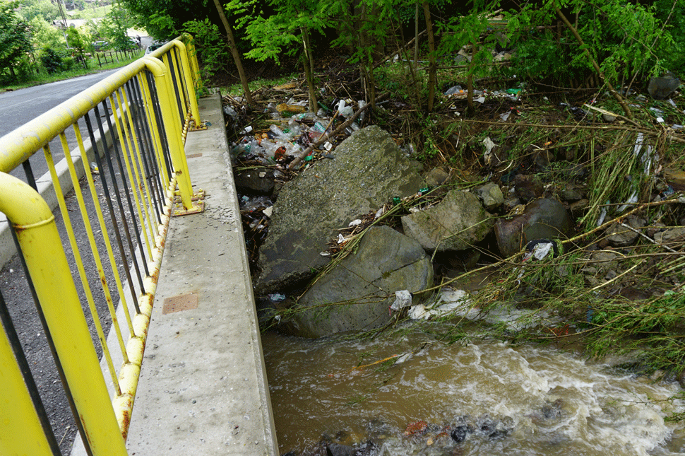 A férfi szerint gát képződött a szemétből, a hordalékból a patakon, azt egyszercsak átszakította a víz, s az nagy erővel zúdult az udvaraikba. Tovább haladva a Kis-Homoród árterületét a kocsiból csodáljuk csak meg: úgy néz ki, mintha több hektár szemetet ültettek volna a patak partjára.