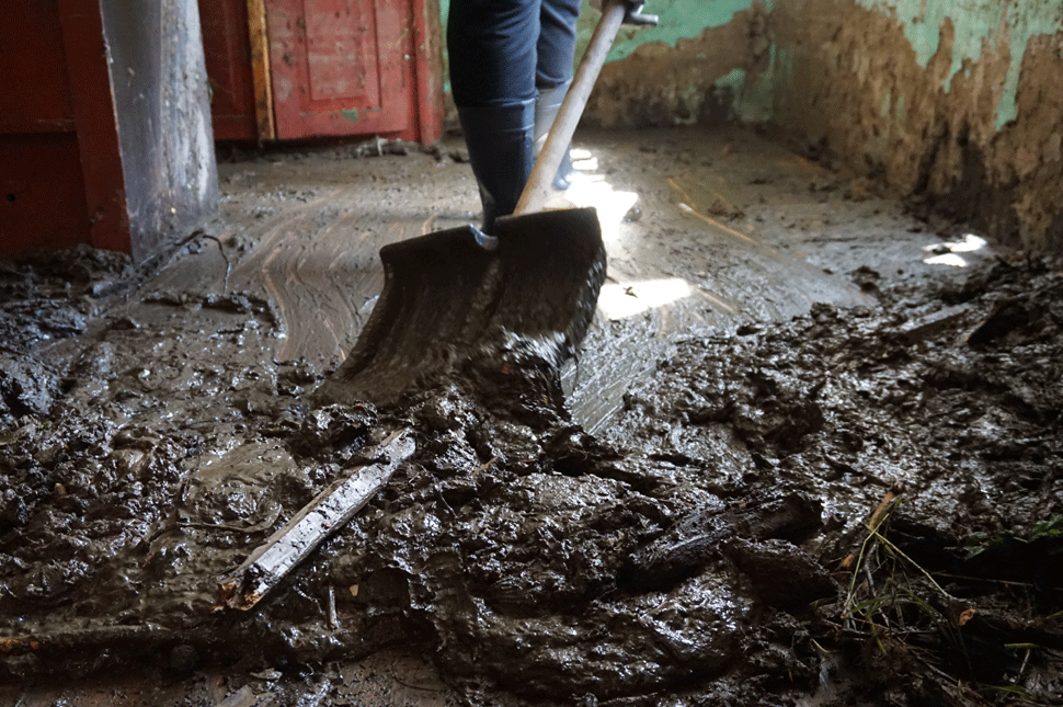 Míg beszélgetünk, érkeznek a munkagépek, hogy rendbe tegyék az utat, amennyire lehet. Egy másik asszony azt mutatja, hogy a házuk mögötti hegyről a csűrjükön keresztül zúdult be a víz, kinyitotta a csűrkaput, s a kaput, hogy tudjon átmenni rajta. A patak úgy höngörgette a nagy köveket, hogy a házban hallottam a csattogásukat. Borzasztó volt még hallgatni is.