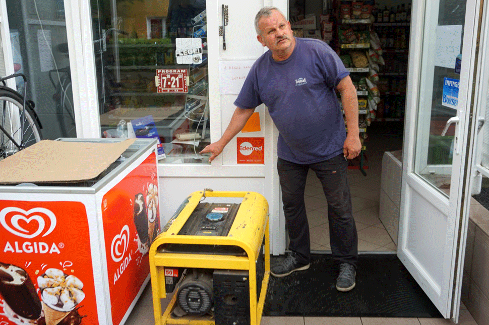 A Sárgarózsa ABC zárva, de bent mozgás van, árvíz utáni tevés-vevés. A tulajdonos jön elénk. Áruban kára nem lett, de egy hűtője elromlott, s kettő sorsa kérdéses, ezeknek 2500 euró darabja. Amikor látták, hogy elkezd befolyni a víz, ugrottak, hogy felrakják az alsó polcokról az árut. Generátorral világítottak ma a boltban, mert, hogy jobb legyen, a transzformátor is kiégett a lakótelepen.