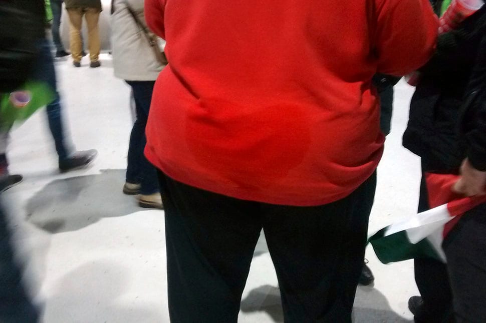 A szektorunkba lépve nem hagytak sokat csodálkozni, mellettünk termett egy zöld ruhába bújt önkéntes, aki szeretett volna a helyünkre kísérni minket. De ekkor még nem látogattuk meg a büfét, hogy feltankoljunk az első félidőre, beálltunk ezért a sor végére.
