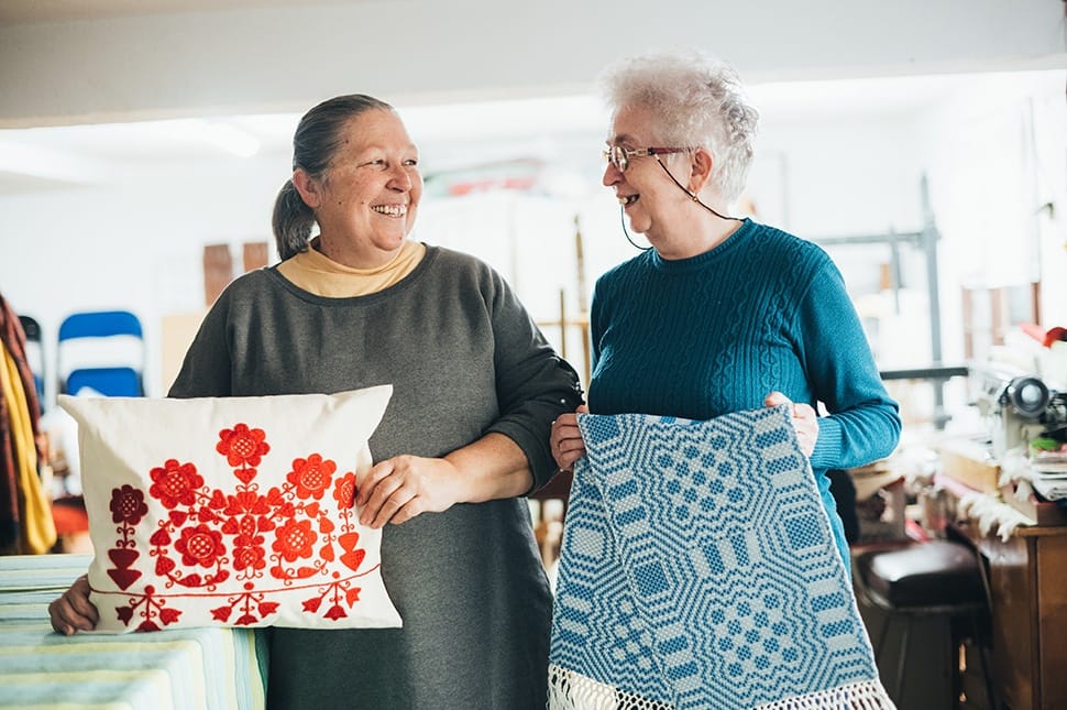 Ibolya és Gizi néni egy szövőtanfolyamon ismerkedtek meg, azóta elválaszthatatlanok. Tizenhárom éve már saját kaláka körüket vezetik, és oktatnak.