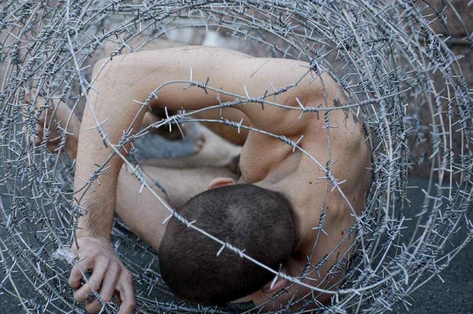 Illusztráció: Pyotr Pavlensky orosz performansz művész alkotása, Carcass, 2013. forrás: cnn | Courtesy Pyotr Pavlensky