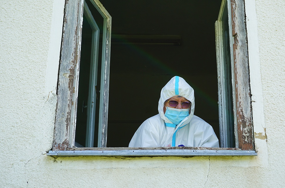 Kisvártatva kihajol, szintén védőruhában az ablakon a doktornő. Dr. Gálfi-Czirjék Rozália harminchárom éve dolgozik a faluban, Kolozsváron végzett, de Balla Árpád doktor úr mellett tanulta meg Udvarhelyen igazán a mesterséget, mondja. Már elmehetne nyugdíjba, 67 évesen a veszélyeztetett korosztályba tartozik, de most úgy érzi, nem hagyhatja magára a falut. Mindenkit ismer név szerint, kicsitől nagyig, tudja a rokoni és ismerősi szálakat, segítsége nélkülözhetetlen a járványtanosoknak, hogy kiket érdemes tesztelni, megfigyelni.