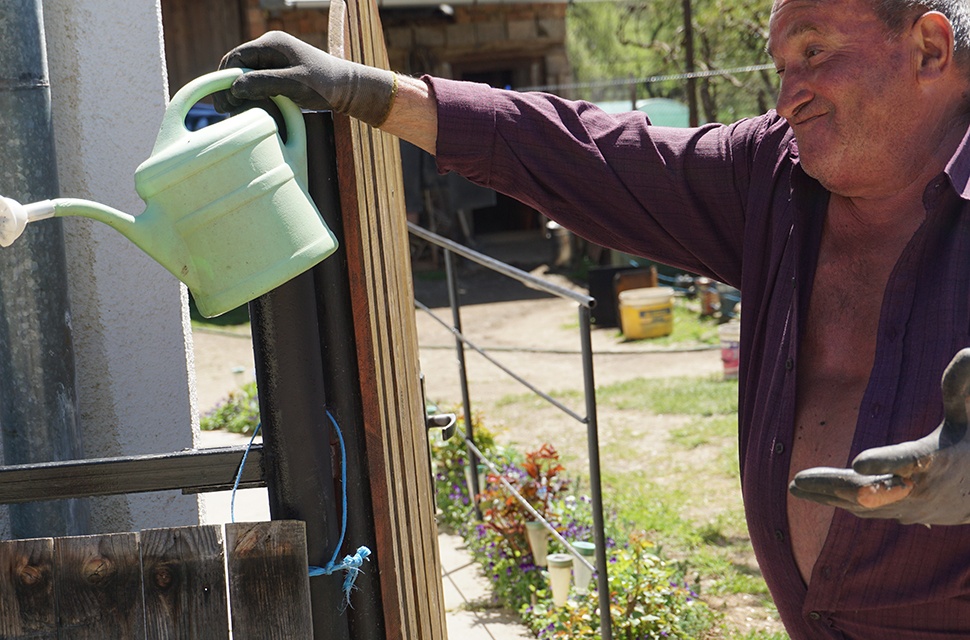 Kicsit fennebb egy férfi locsolgatja a betont, hogy kössön meg az új kerítés. Azt mondja, ejsze ne forszírozzuk a koronavírus témát. Nincsenek jobban bezárva, mint máskor, eddig se jöttek-mentek sokat, most se. A boltig vaegyszer elmennek, de kenyeret, paradicsomot vesznek csak. Egyéb megterem a háztartásban. Mindenki betartja a szabályokat. A rendőrség ellenőriz rendszeresen.