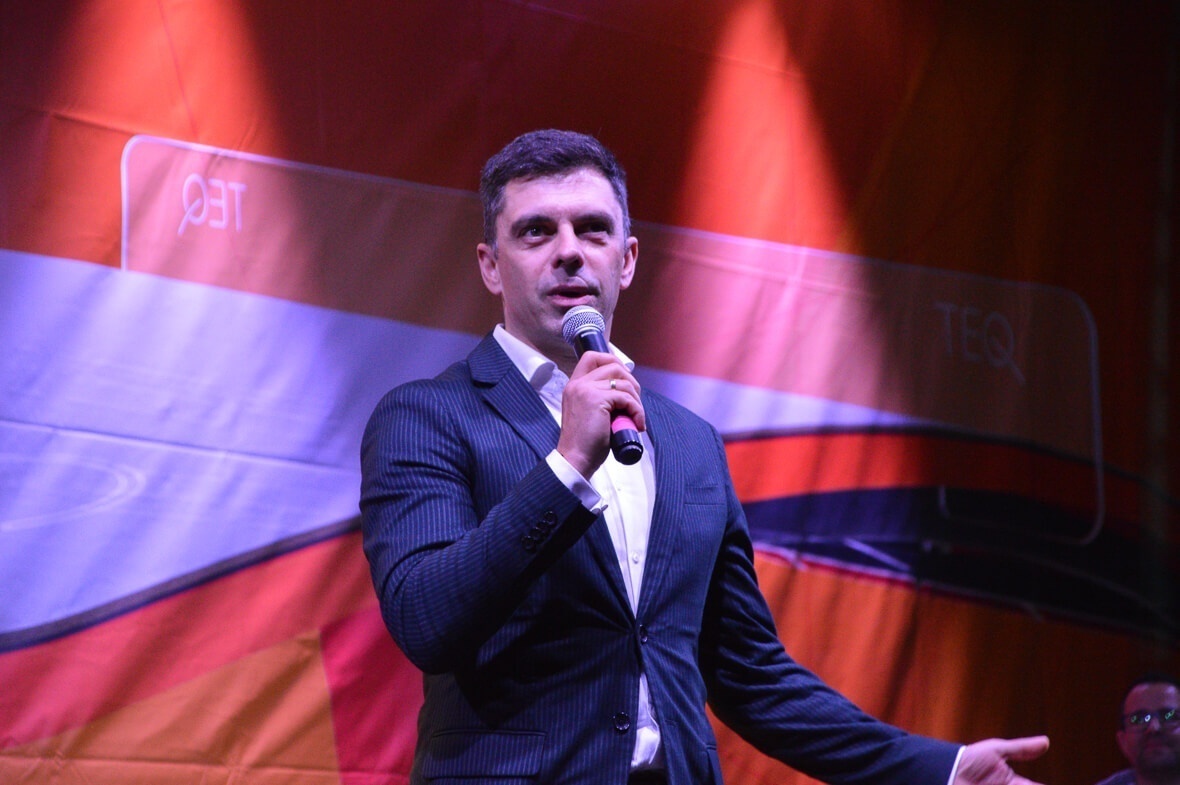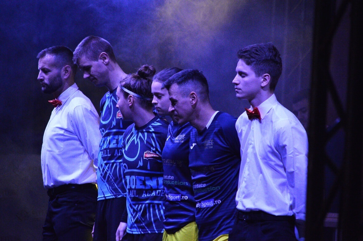És a show nem az igazi gallérok nélkül, Novák Károly Eduárd sportminiszter – aki 10 percet a tribünön tekintett meg a versenyből – beszédében főleg a sportág térnyeréséről beszél, arról, hogy büszke rá, hogy Románia is ilyen mértékben hozzájárul ennek a szakágnak a fejlődéséhez. Huszár Viktor, a Nemzetközi Teqballszövetség végrehajtó bizottságának elnöke szerint ez a fejlődés meg sem fog állni az olimpiáig, és ezt az egész teqballcsalád, azaz a játékosok, szövetségi tagok, bírók és rajongók csapatmunkája fogja meghozni. Na, de vissza a versenyekhez.