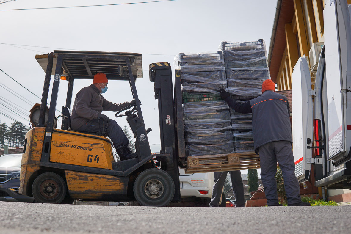 A kész csomagok átadódnak a szállítóknak. A kiszállításban több szervezet is segédkezett: a Caritas, a Diakónia, a Gondviselés, a Mallersdorfi Ferences Nővérek és az UIET. A Helyi Rendőrség segített biztosítani a terepet, ahol szükség volt erre.