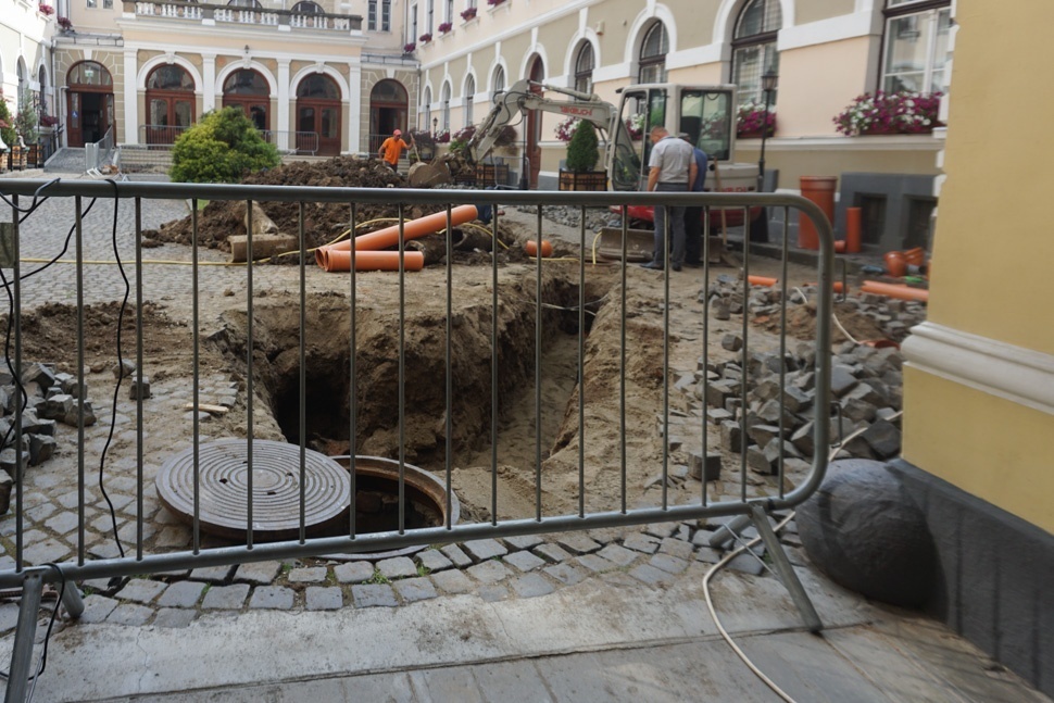 A polgármesteri hivatal udvarán a szennyvízvezeték cseréje zajlik, a munkálatoknak jövő héten lesz vége – árulta el portálunknak Zörgő Noémi szóvivő. Az ügyfélfogadást ez nem befolyásolja.