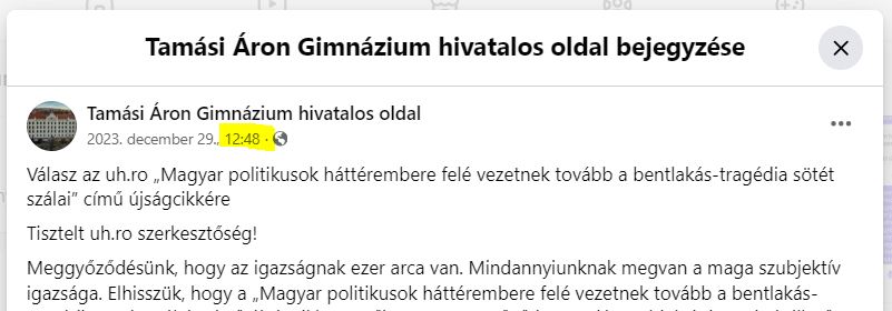 Ezt írja a Tamási Áron Gimnázium vezetőtanácsa