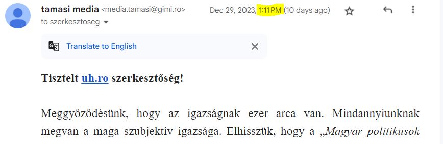 Tisztelt uh.ro szerkesztőség!