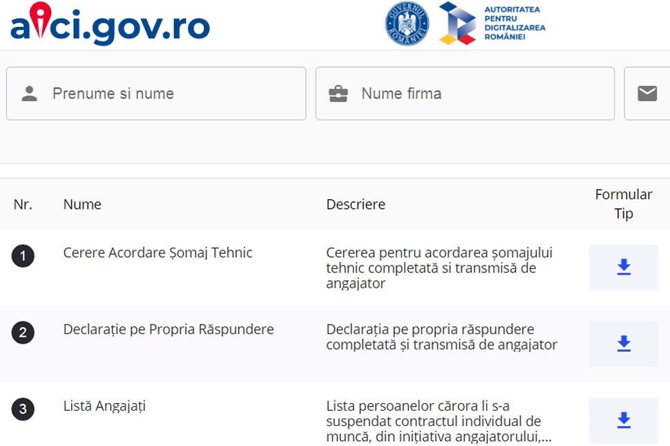 A platform egyelőre arra használható, hogy a jogi személyek elküldjék az Országos Munkaerő-foglalkoztatási Ügynökség (ANOFM) megyei kirendeltségeinek a koronavírus-járvány miatt kényszerszabadságra küldött alkalmazottaikra vonatkozó igényléseket.