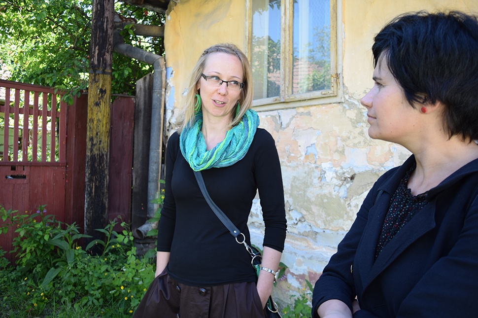 − Figyeljétek meg, hogy milyen érdekes emberi kapcsolatok tudnak létrejönni ilyen térben. Kijön a nénike a tornácra, átkiabál a szomszédnak, belát a konyhájába, tudja mit főz, átjön a macska, a gázcső kerítésként funkcionál, a postaláda ez a szívecskés szürke PVC-csődarab. Annyira meghökkentő, hogy már szép – szól hozzá Kinga.