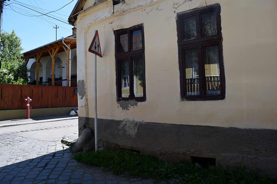 − Ez a ház egy nagyon szimpatikus darab, áll meg az utcasarkon Zsolt. Ez majdnem abban az alakjában van, mint ahogyan építették, és most még meg lehet itt csodálni, de sajnos valószínűleg pár év múlva már nem lesz itt.