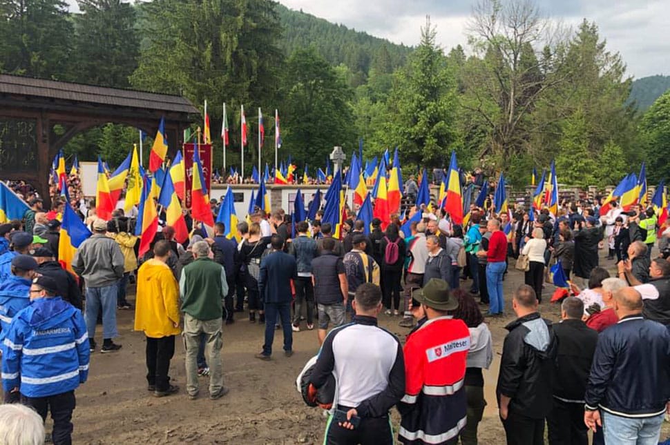A karhatalmi erőknek alig fél óráig sikerült pajzsot képezniük a lakatlan hegyi település temetője előtt élőláncot képező székelyföldi tiltakozók és a több ezer román megemlékező között.