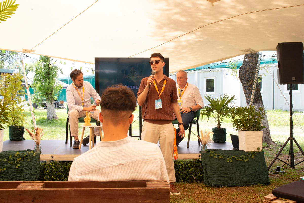 Közben a vihar tényleg megérkezett. A sátorba besüvítő szél mintha meg is oldotta volna a beszélgetés dramaturgiáját: miután szóba került, hogy Kulja András, a Tisza Párt EP-képviselője igazából lassú, vontatott, Magyar Péter paródiáj, és egy kicsit szégyellni való figura, már csak néhány gondolat hangzott el, aztán következtek a nézői kérdések:
