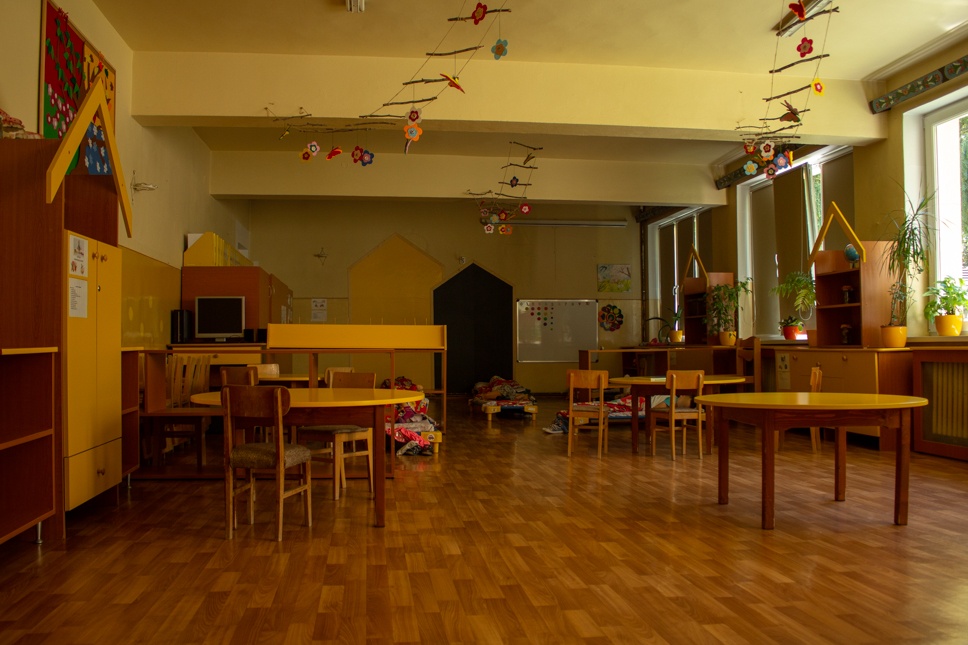 mert használatuk jelenleg nem biztonságos: a legók, homokozókészletek maradtak, meg a műanyagok, amik fertőtleníthetők. Ezenkívül mindenkinek megvan a saját játékos dobozkája, asztala, széke, ágya, amihez kizárólag ő nyúlhat hozzá. Egy csoport két termet használ: az egyikben tartják a foglalkozásokat, a másikban alszanak, így az ágyak mindig megfelelő távolságban lehetnek egymástól, nem kell őket egymásra pakolni, mint általában szokták. A szülő csak az ajtóig jöhet, ott egy alkalmazott átveszi a gyereket, megméri a lázát, lecseréli a cipőjét, és utána mehet is a saját csoportjához.