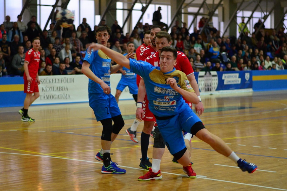 Ennek tudatában vágott neki a mérkőzésnek Sipos Lóránt együttese. Már a találkozó elején remek játékot mutatva jelezték, hogy a pontok ma Udvarhelyen maradnak. Sorra lőtték a gólokat Komporályék. A védekezéssel sem voltak problémák. A kapuban Orbán is remek napot fogott ki. Többször is bravúrosan hárította a vendégek próbálkozásait. Félidőre egy megnyugtató 17–11-es udvarhelyi vezetéssel mehettek a csapatok.
