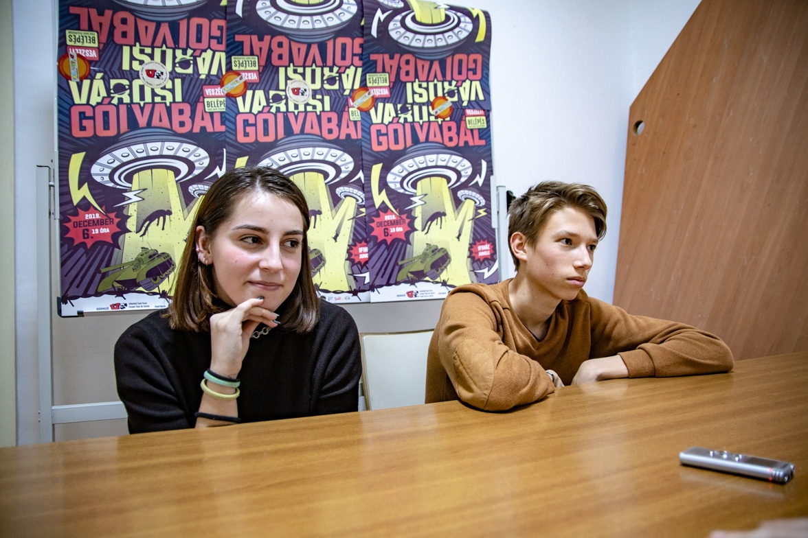 Lázár Hunor a zeneszakon tanul és Csíkszeredából érkezett, míg Jakab Demeter Vivien képzőművészeti szakon. Ő szovátai, de már korábban is élt és tanult Udvarhelyen. Huni kiesett Csíkból, mert ott tizenötre csökkentették a helyek számát. Már bele volt keseredve a helyzetébe, akkor látták meg, hogy a Palló Imrében maradt egy hangszeres hely. „Először, amikor meghallottam, hogy nagybőgő, azt mondtam, nem, négy évet gitároztam, aztán leesett, hogy ez még mindig jobb, mint egy csíki szakiskola” – meséli a helyzetét. Vivien a kézilabda miatt jött vissza Udvarhelyre, mert a vásárhelyi és az udvarhelyi művészeti között vacillált. Ő grafikus, ruhatervező, vagy tetoválóművész szeretne lenni. Most építészetet tanul, de tervez váltani textilre, a kézilabdát közben kezdi elengedni, mert nagyon sok idejét öleli fel a művészeti.