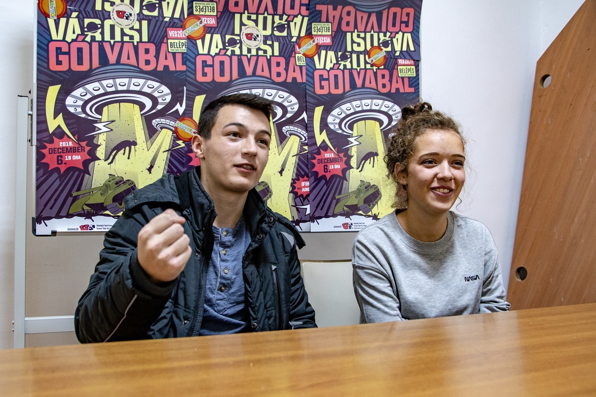 Zűrös volt – mesélik saját iskolájuk gólyabáljáról: nem is voltak párban az elején, de cseréltek és ez jó döntésnek bizonyult. Egy film ihlette iskolájuk gólyabáljának témáját, „nem voltak érzelmek, mi szabadítottuk fel, amikor megnyertük, és így színesebb lett a világ” – avat be Kinga. Amikor a gólyabál kedvenc pillanatáról kérdezem őket, egyszerre vágják rá: amikor kimondták, hogy nyertünk. Következő kérdésemben arra kérem őket, hogy egy emlékezetes próbáról meséljenek: Szabi egy sisakra felragasztott szivaccsal kellett, hogy fessen Kinga köpenyére egy érzelmet, mégpedig a békét, válaszolják. Először a fehér zászló ugrott be neki, később jutott eszébe, hogy két pálinkáért nyúló kezet kellett volna rajzolnia, mert az nagyon béke.
