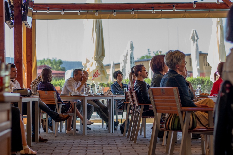 A lazítások óta az első offline bizniszvitaminra kerül sor június 25-én a HBC szervezésében. A helyzethez alkalmazkodva a Septimia teraszán gyülekezünk, kicsit izgatottabban, mint máskor, hiszen 3 hónap óta ez az első valós térben rendezett esemény. Szakács-Paál István, az intézmény igazgatója elmondja, nem is terveznek már visszatérni az online térbe, és bíznak abban, hogy ezt nem hiúsítja meg egy következő vírushullám.