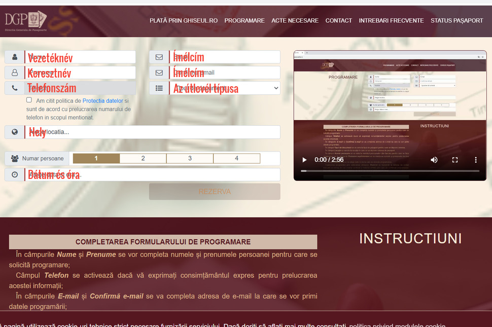 Időpontot csak itt foglalhatsz, telefonon, ímélen, faxon keresztül nem programálnak. A vezetékneved, keresztneved, kétszer az ímélcímed és, ha szeretnéd, a telefonszámod kell bepötyögni. Majd a Tipul de document ablakocskában azt kell kiválasztanod, hogy melyik típusú útleveled szeretnéd. Ezután az Alege locația ablakban a H betűre kattintasz, s meg fog jelenni a csíki pont. Majd választanod kell, hogy hányan szeretnétek útlevelet igényelni. Az utolsó, Alege data și ora résznél pedig a neked tetsző időpontot foglalhatod le, július 28-án a rendszer szerint a legkorábbi időpontot augusztus 6-ára lehet elcsípni.