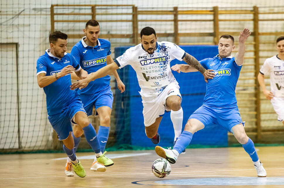 Hadnagy (hátul) és Bíró (jobbról) is a Kecskemétnél játszik egy évet. Fotó: Balaton Bútor FC Veszprém Facebook-oldala.