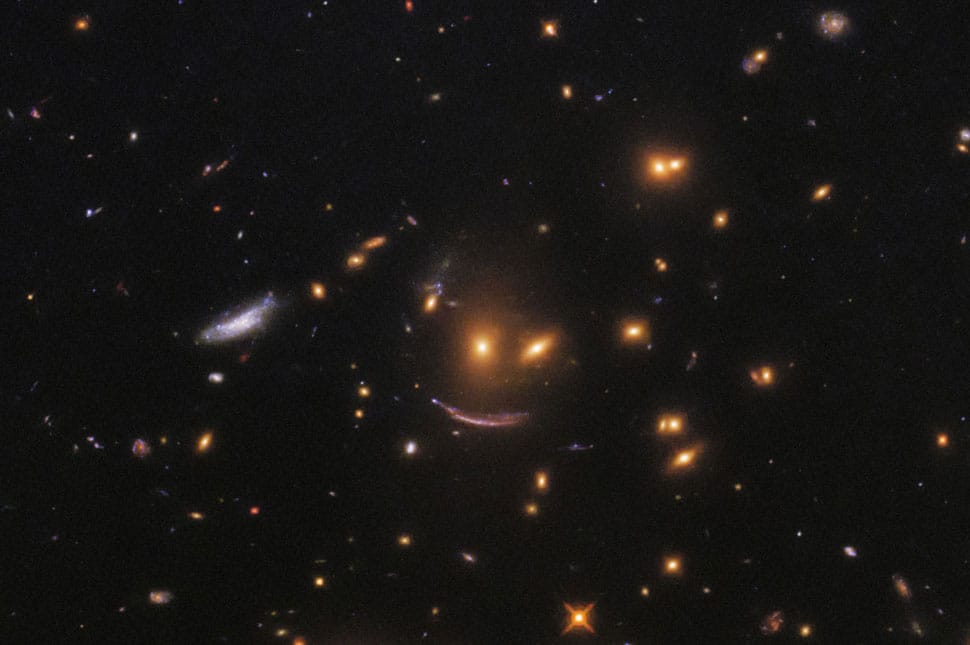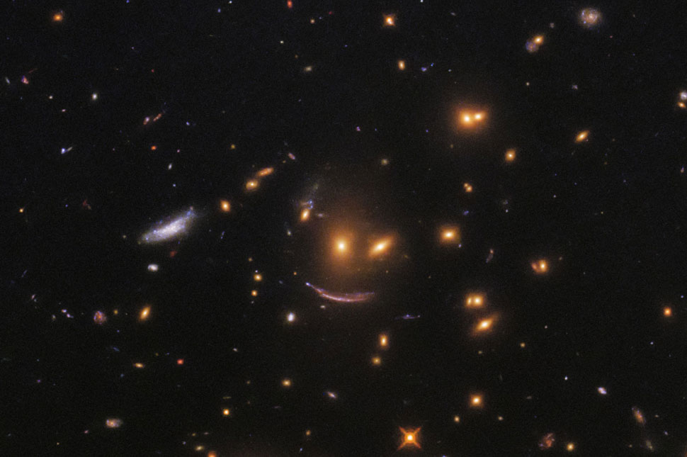 Természetesen van tudományos magyarázata, ezt is elárulták az amerikai űrkutatók: a mosolygó arcra hasonlító galaxist azért látja ilyennek a távcső, mert a fénye felénk haladva valamilyen masszív objektum mellett haladt el, amelynek gravitációja eltorzította azt.
