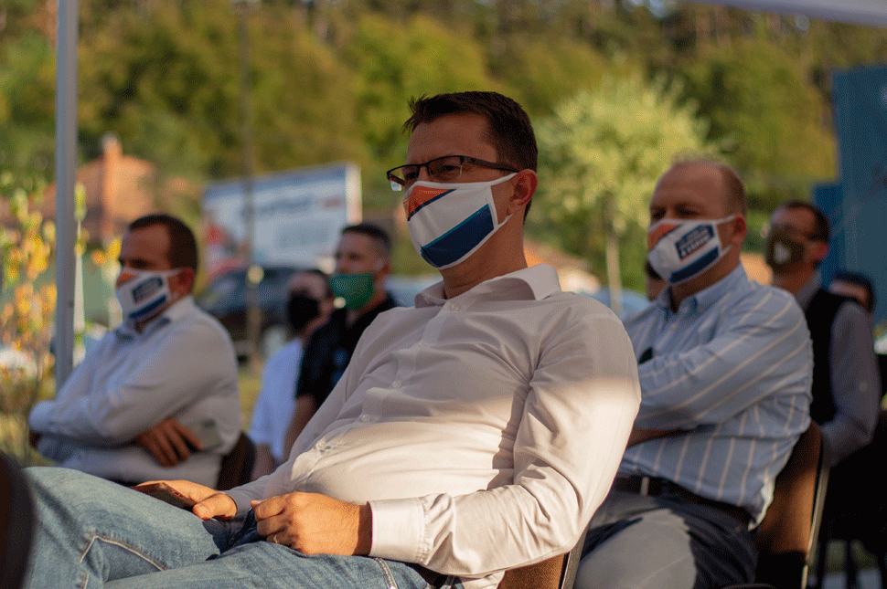 Maszkot fel, kezdődik! Bemutatkozik a légiós moderátor, Grubisics Levente, a Sepsi rádió főnöke és ismerteti a naaagy udvarhelyi választási vita szabályait: az idő kötelez, a taps szabad, a bekiabálás nem.