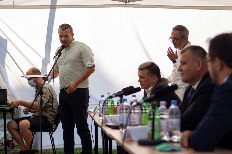 Biró Csaba, a POLgármester kabinetvezetője az első kérdező a közönségből.
