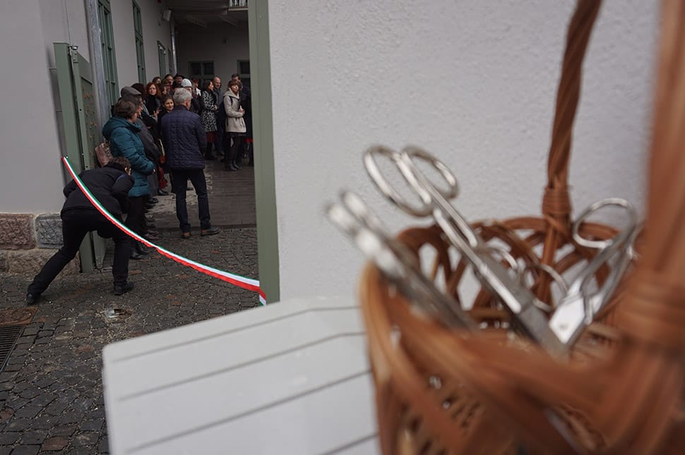 Az iskolaudvaron kockakő, ajtajában kiülő, egy üvegajtó mögött tarka babzsákok, a falon képek, melyeken látni, hogy milyen volt és milyen lett a római katolikus lánynevelő, ami volt már zeneiskola és dögi névre hallgató egészségügyi középiskola is. A szürke, a fehér, a zöld és a természetes fa színe ölel át az udvaron, és teremti meg az átmenetet a központi épület tiszteletet parancsoló jellege és a gyermeki játékosság között, állapítottuk meg, amíg bámészkodva vártuk, hogy a piros-fehér-zöld szalagot miszlikbe vagdalják az előkelőségek az előre kikészített ollókkal.