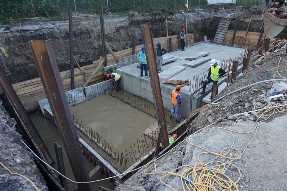 Az épület mellett található nagy gödörről is kérdezzük Kerekes Tamást, egyébként is a járókelők többsége azt veszi leginkább szemügyre. Sejtjük, hogy innen a mélygarázs legendája. Megtudjuk, ez egy tűzmedence lesz az egyik felében egy hatalmas tartállyal, a másikban a szivattyúkkal.