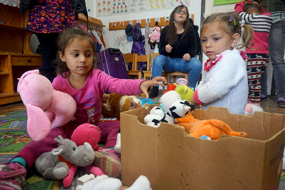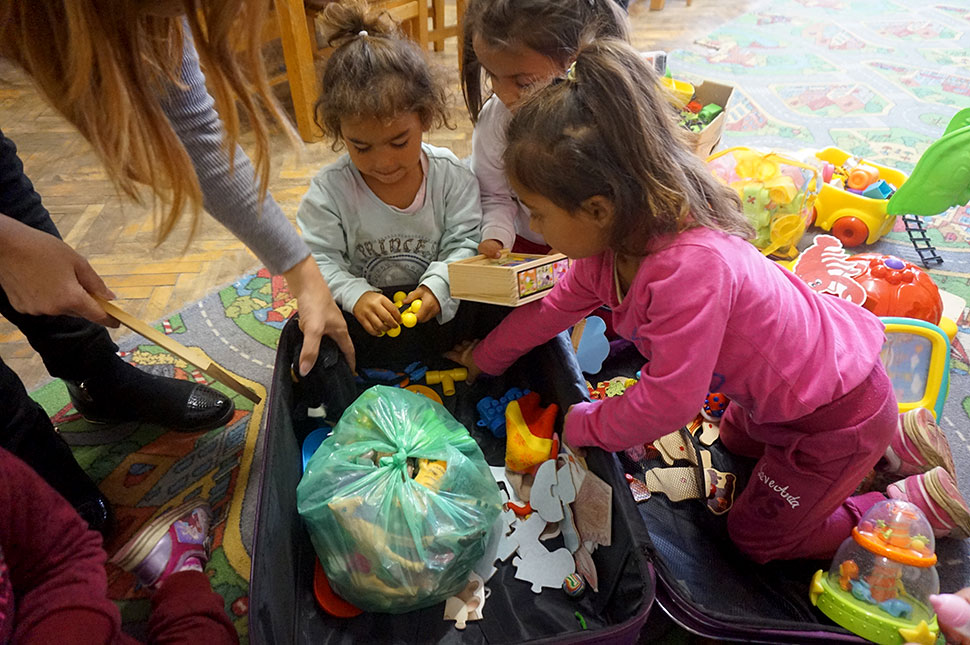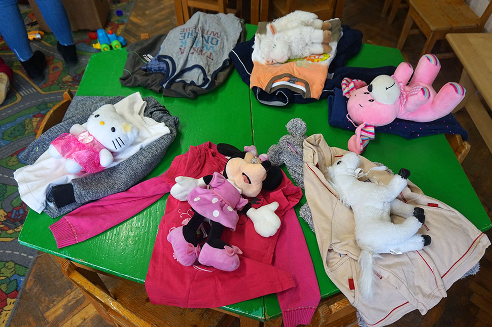 Nektek hála, rengeteg játék és ruha gyűlt össze, ezért különválogattuk a kicsiknek, vagyis az ovisoknak és a nagyobbaknak, az iskolásoknak való dolgokat. Elsőként a Ficánka napközihez tartozó, a régi Ucecom épületben működő ovit látogattuk meg.