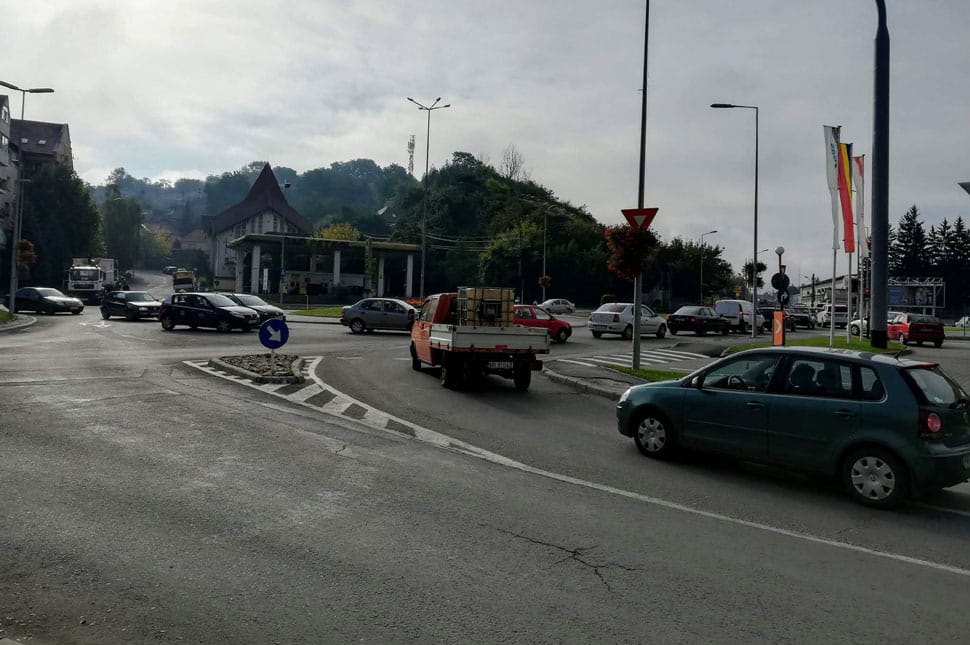 Egy sofőr bebizonyította, hogy a másik irányba is járható az egyik udvarhelyi körforgalom.