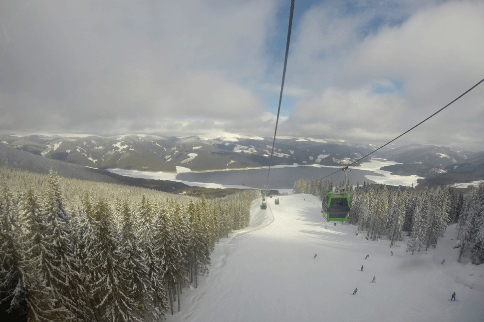 Ha elég ügyes vagy és bátor, akkor – a szerpentinből kilépve – a porhóban a fák között is beereszkedhetsz, csak vigyázz, nehogy eltévedj és valahol a főúton köss ki. Egyébként ezek a részek inkább deszkás birodalomnak számítanak, így szent is a béke, a síelőké lehet a főpálya, ami piros, haladó kategóriásnak számít. De ha kezdő vagy, az 1.850 méterig emelkedő kabinból kiszállva két tányéros (teleski) felvonó vár az erdős rész feletti kopár hegyoldalban, hogy addig gyakorolhass, amíg a nap végére egészen a tóig be mersz ereszkedni. S ha mégsem, vagy elfáradtál, egyszerűen visszaszállhatsz a kabinba, ami levisz. Jövőre ígérik, újraindítják a székes felvonót is, amelyre a kabinból lehet átszállni és egészen a hegycsúcsig (1940 m) visz, így még hosszabb lesz a pálya.