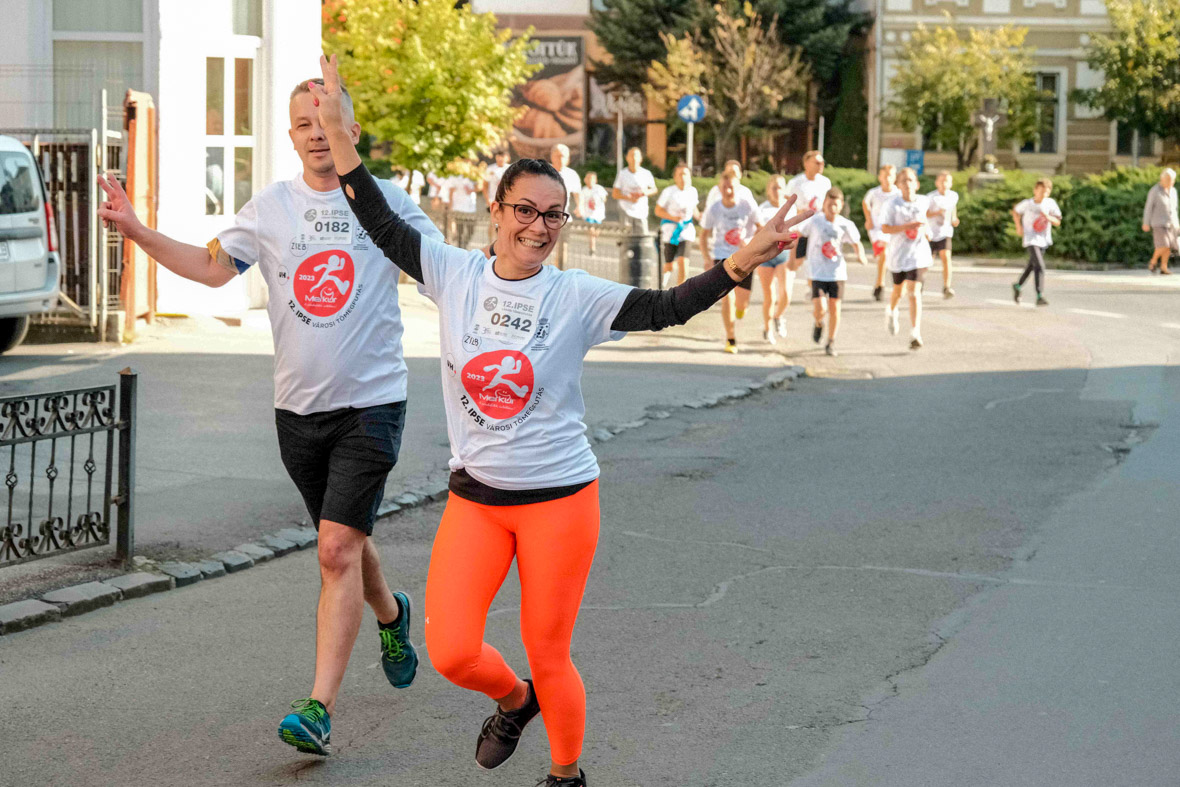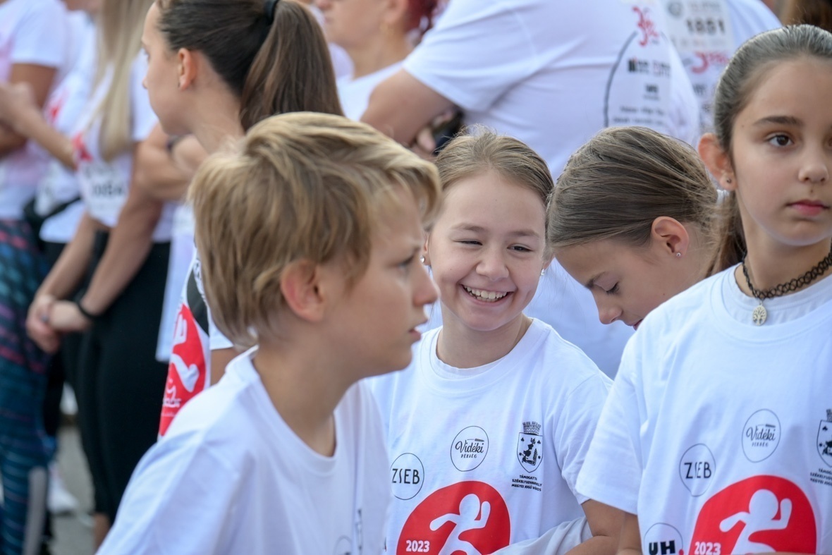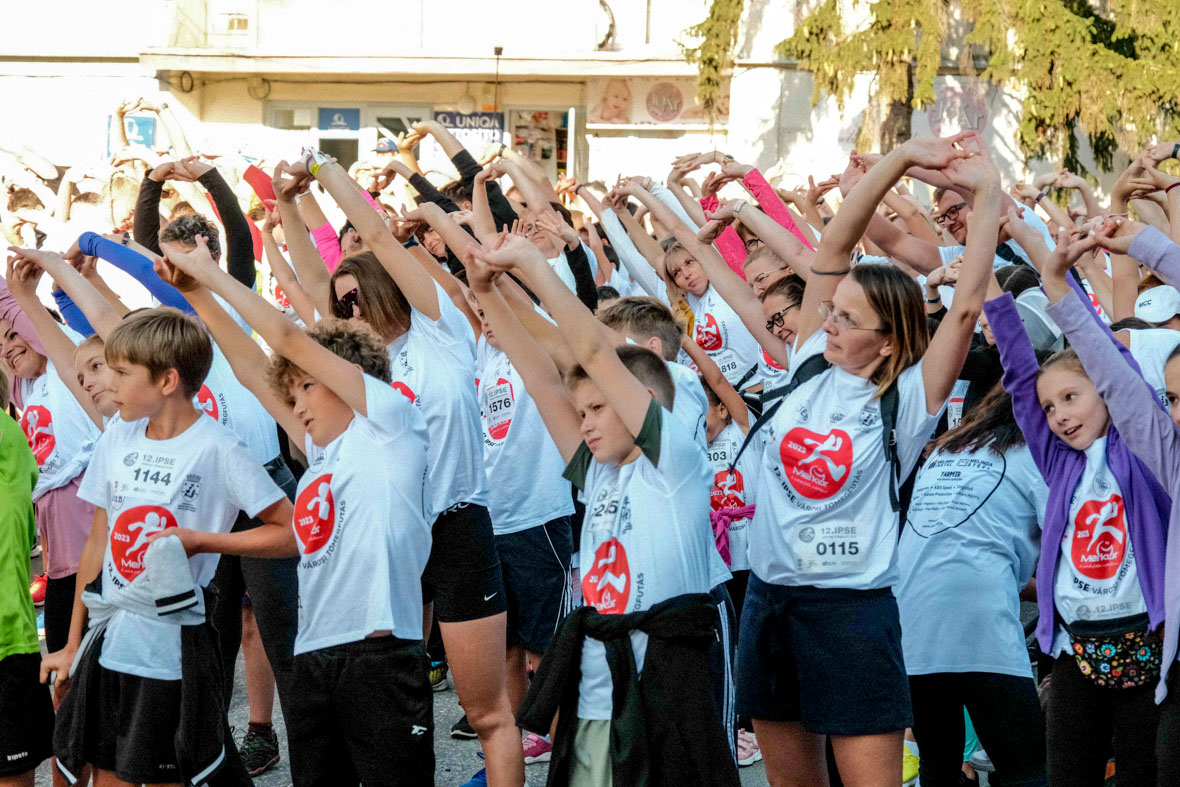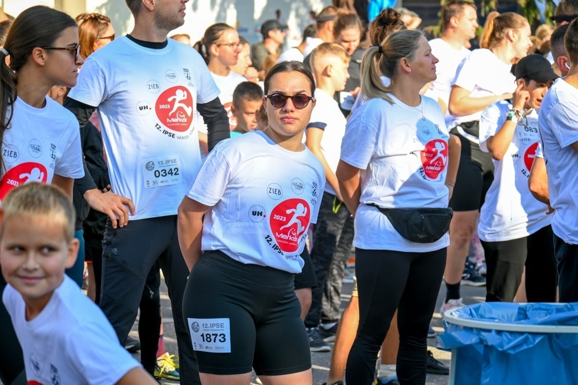 A szervezők érkezése után 1-2 órával mosolygó arcok kezdik betölteni a teret, gyűlnek a résztvevők is, ők már fehér, tömegfutásos pólóban virítva.
