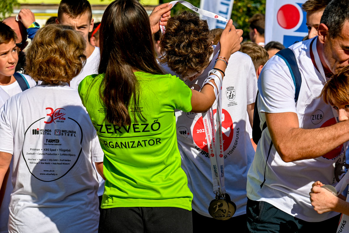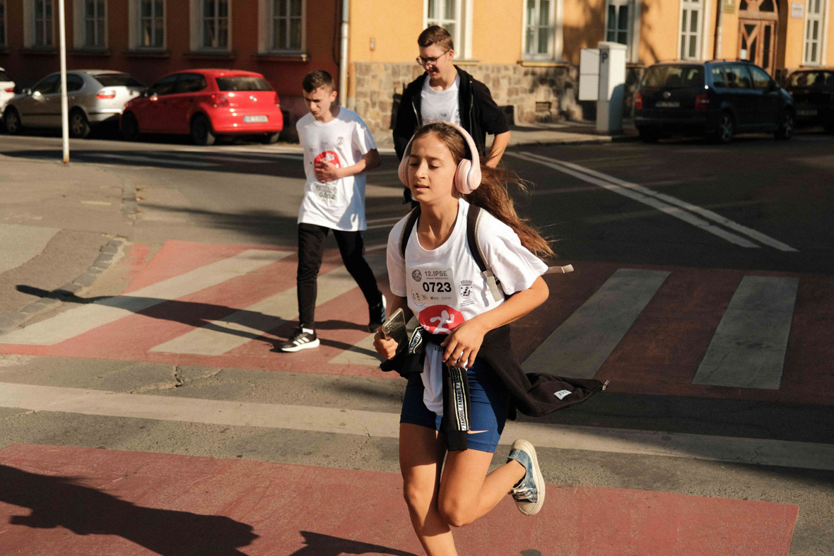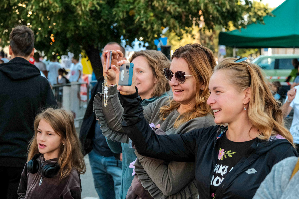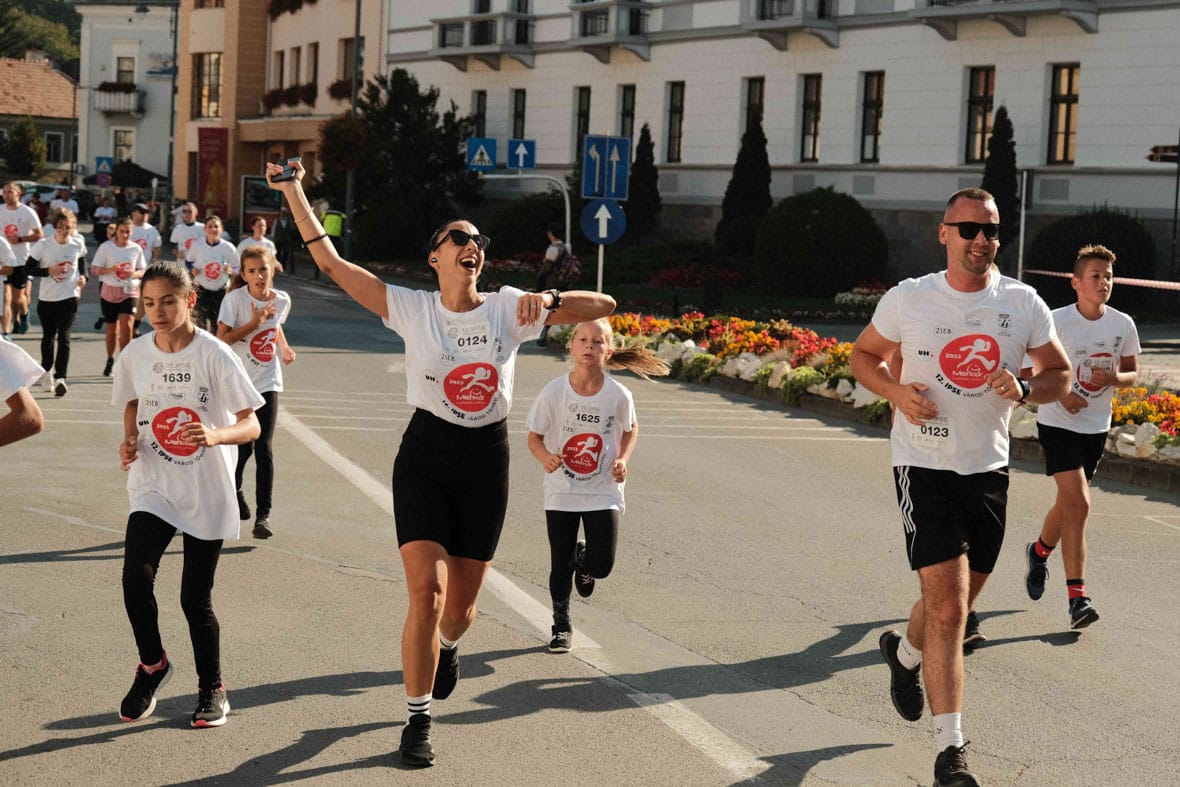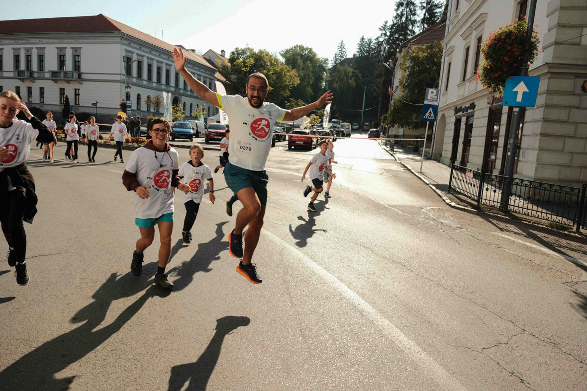 A szervezők érkezése után 1-2 órával mosolygó arcok kezdik betölteni a teret, gyűlnek a résztvevők is, ők már fehér, tömegfutásos pólóban virítva.