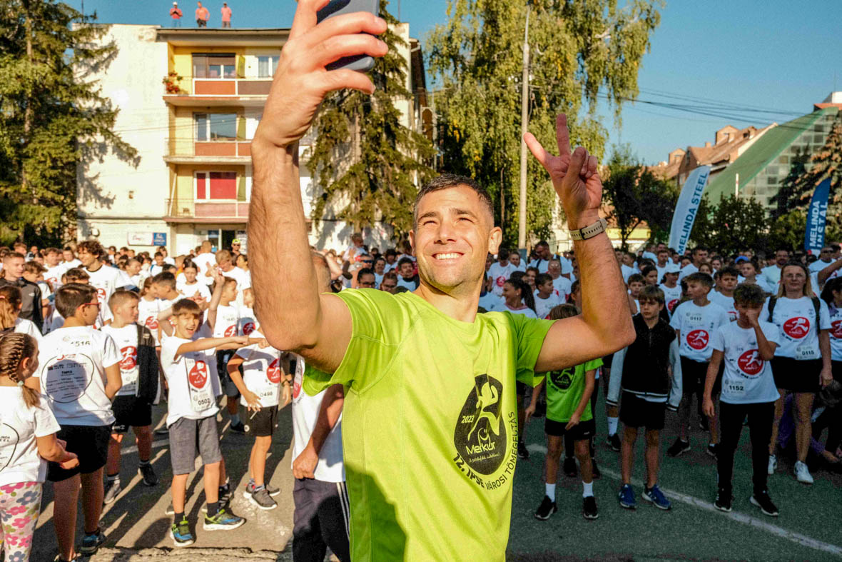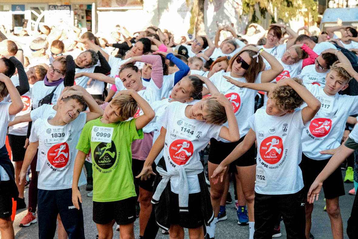 Persze, nem lehet fejjel futni a falnak, Gál László segítségével együtt melegít be a tömeg a futásra.