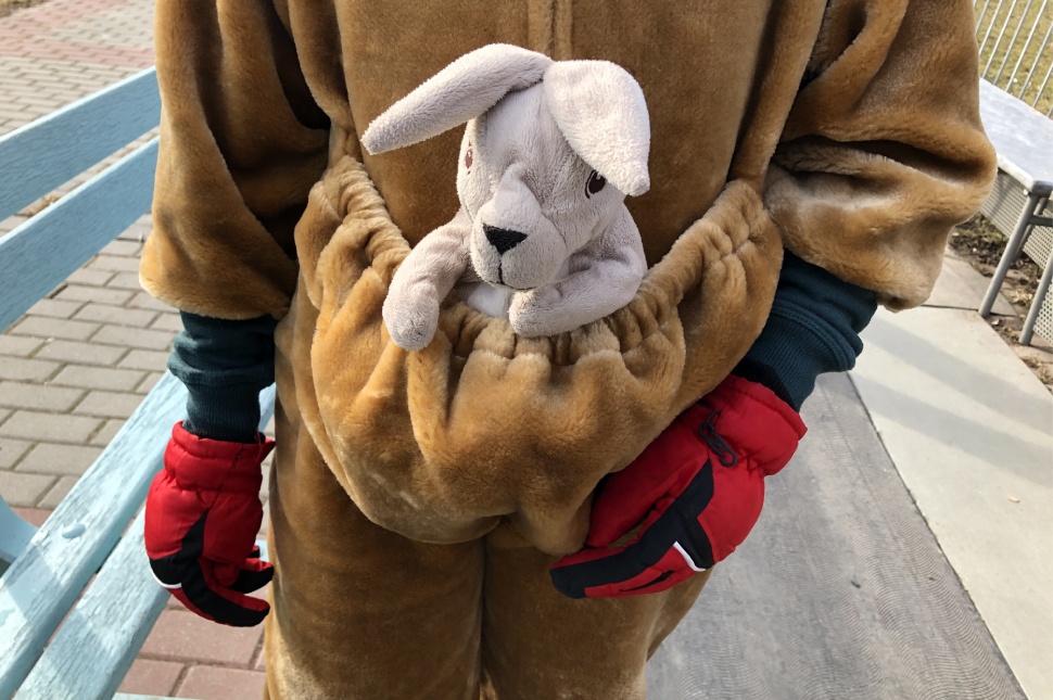 Zsebbe nyúl a kenguru. Nagyon állat ez a jelmez.