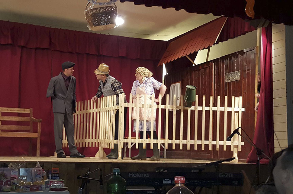 Bármennyire is hihetetlen, a kisgalambfalvi szervezők is pont ezt a két jelenetet választották ki szombatra. Így egyszerre lehet hahotázni Az orvosnál és a A milliomosok című bohózatokat látva. A Régi Motorosok nevet viselő helyi színjátszó csoport tagja, Miklósi Kinga elmondta, nagyon jó közösséget alkotnak, évente eljárnak közös kirándulásra a szereplőkkel, részt vesznek az Ekhós szekér nyomában elnevezésű megyei rendezvényen is.