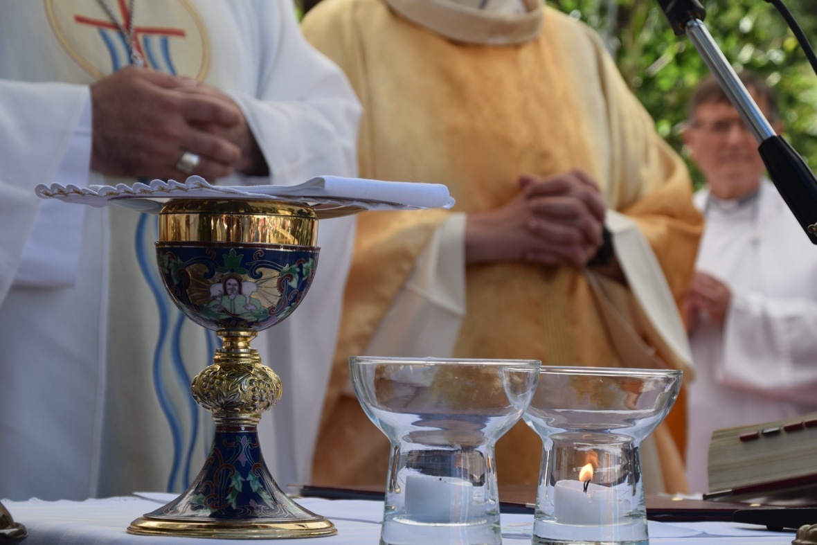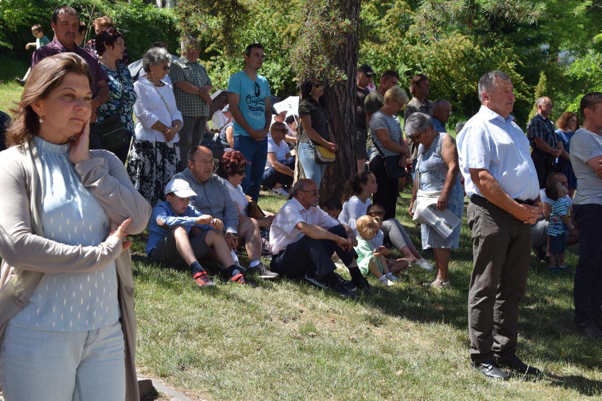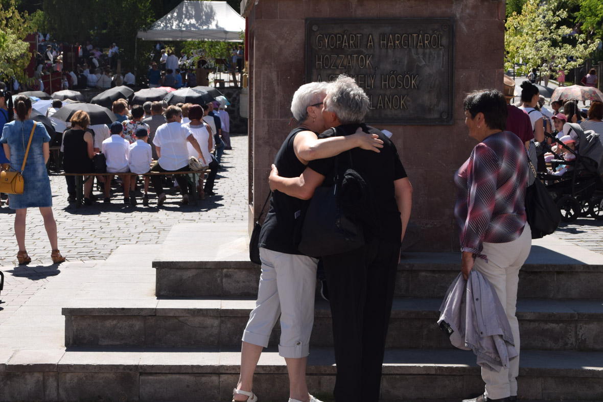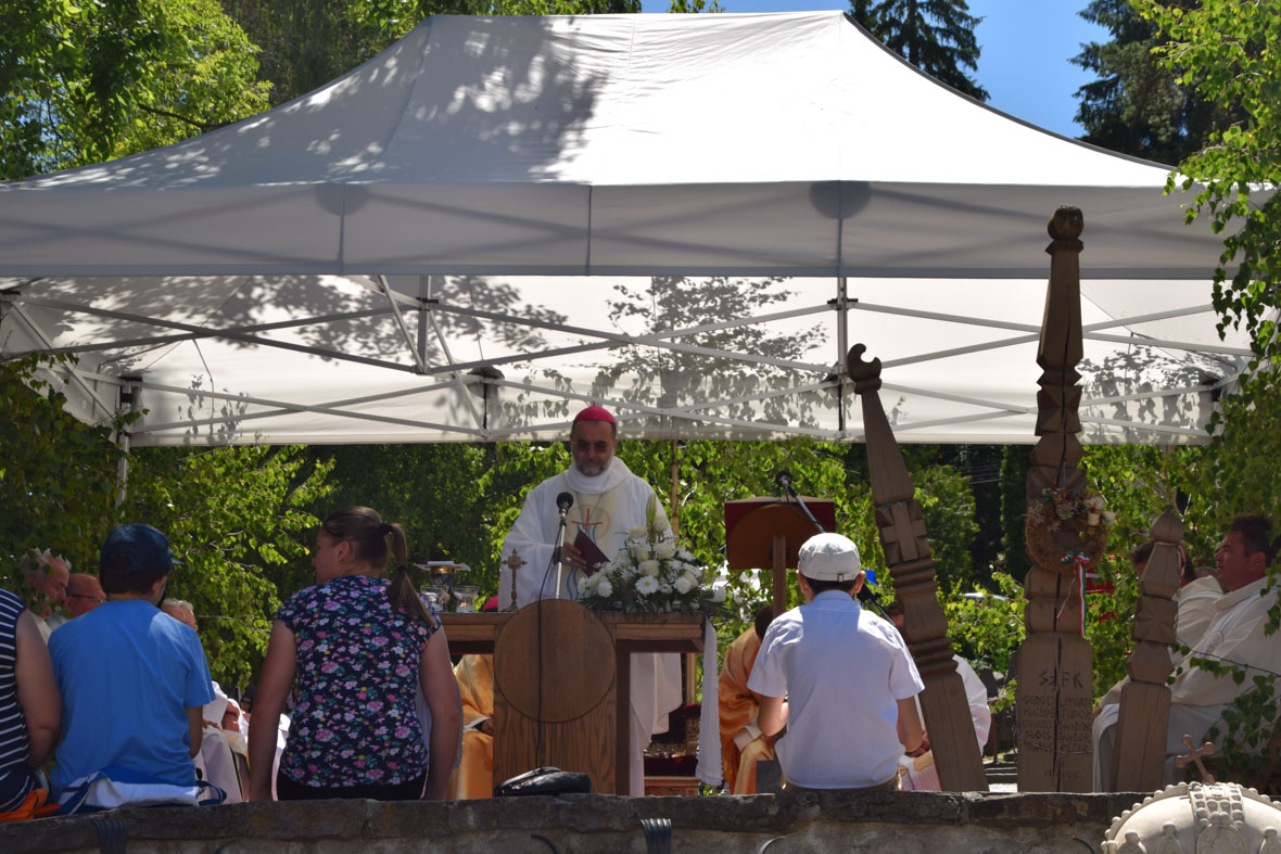 Bár hallani gyengébben lehetett, sokan a főoltár mögött húzták meg magukat, a Krisztus-szobor és a székely óriászászló oltalma alatt. A hétágra sütő, de nem túl forró napon a vallásos meghittségen túl igazi majális hangulat is támadt.